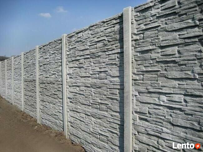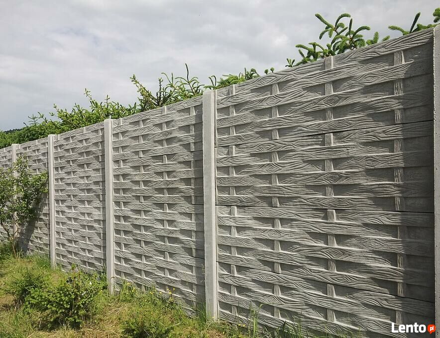 Betonowy płot złożony jest z płyt i słupków.Płyta betonowa ma wymiar 200 cm x 50 cm, cena 62 zł brutto.